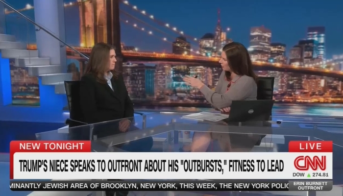 After showing the bruise, and playing a clip of the President’s explanation, and quoting Dr. Jonathan Reiner, who advised the White House Medical Unit under President George H.W. Bush — saying the public has a right to know about Trump’s health — Burnett introduced her Trump hitwoman — the president’s bitter niece Mary, a clinical psychologist who has declared him unfit for years, seemingly hour on the hour.