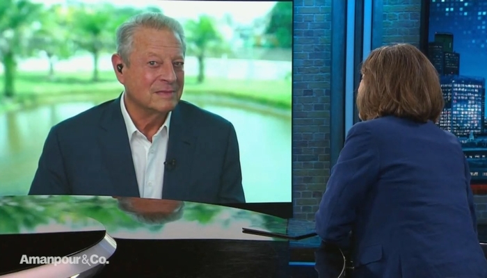 Gore responded by giving a long, rambling speech that began, “Yes, and it’s tragic that Donald Trump and his fossil fuel polluter allies are shooting America in both feet, metaphorically, where the economy is concerned. You know, here’s a new statistic that’s just out, Christiane. China is now exporting to other countries more green technology like electric vehicles and windmills and solar. The value of their green tech exports now far exceeds the exports from the United States to the rest of the world of all of the fossil fuels, all of the coal and gas and oil.”