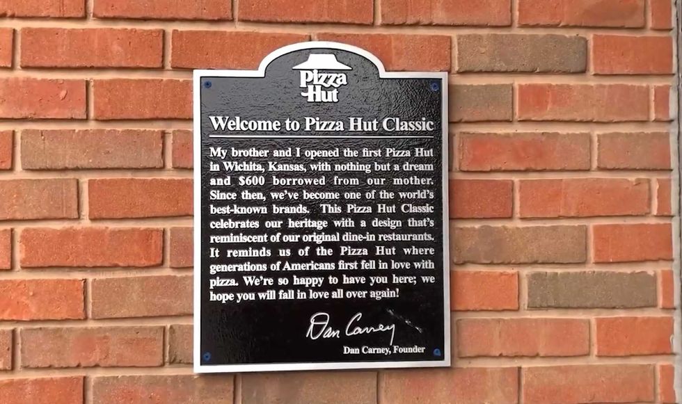 5. A plaque displays a quote from Pizza Hut co-founder Dan Carney, explaining the concept as a celebration of the brand’s heritage.