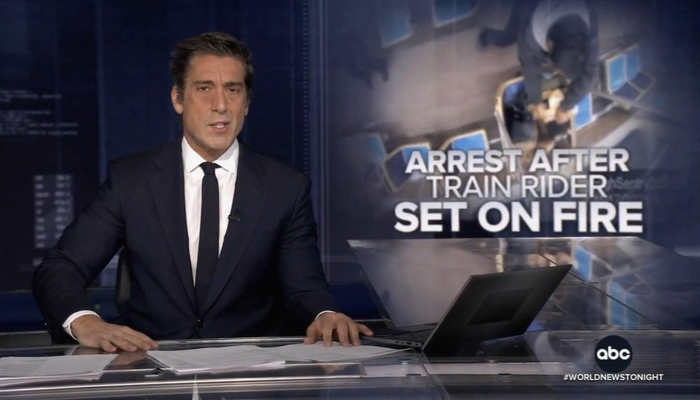 ABC wasn’t much better with only one full, 79-second segment back on the November 19 World News Tonight. Anchor David Muir — who often lacks the ability to speak in complete sentences — announced: “Tonight, federal terrorism charges after a horrific attack on a commuter train in Chicago. Prosecutors say the suspect see on surveillance allegedly setting a woman on fire. Tonight here, we do have news on her condition.”