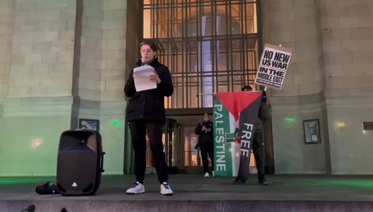 By Monday evening, a separate group of about two dozen, organized in part by the local branch of the Party for Socialism and Liberation, gathered at the steps of the City-County Building on Grant Street downtown to protest the military actions by the United States and Israel.