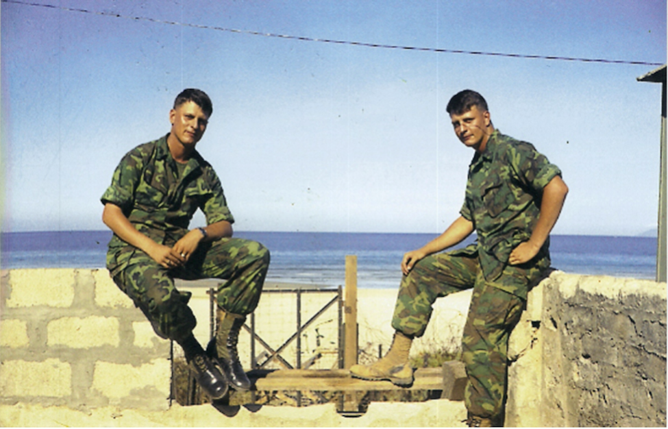 Roger and I joined the Marines together before graduating high school in 1965. By January 1966, we were both in Vietnam but serving in different units. Our assignments occasionally allowed our paths to cross, and on this day in April 1970, we had a brief respite, allowing us to spend a few days together before returning to our units. It was only a few months later that I (Roger) was grievously wounded, as the unit I was leading was ambushed by North Vietnamese Army regulars. I (Ron) was able to spend a week with him in the hospital in Danang before he was transferred out of the country. A year later, Roger was medically retired.