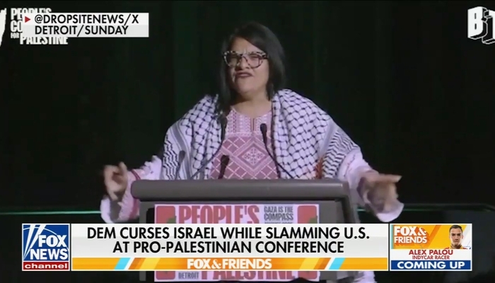 Rep. Rashida Tlaib calls for Hamas supporters to mobilize and take over America. She said she hates that she works in a building for a country that was built on slavery, genocide, rape and oppression.