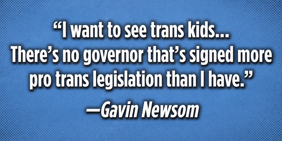 “I want to see trans kids… There’s no governor that’s signed more pro trans legislation than I have.” —Governor Gavin Newsom