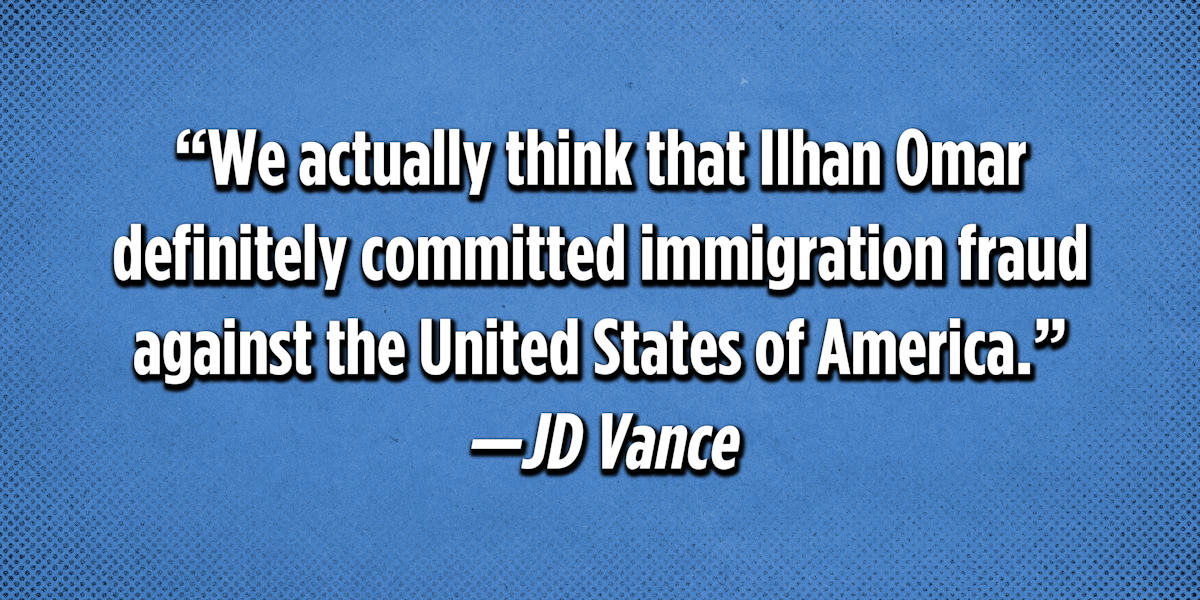 “We actually think that Ilhan Omar definitely committed immigration fraud against the United States of America.” —Vice President JD Vance