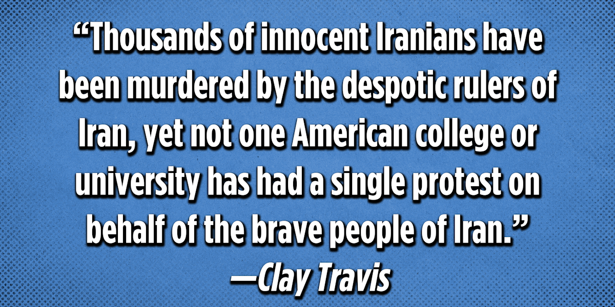 “Thousands of innocent Iranians have been murdered by the despotic rulers of Iran, yet not one American college or university has had a single protest on behalf of the brave people of Iran. Fascinating, isn’t it?” —Clay Travis