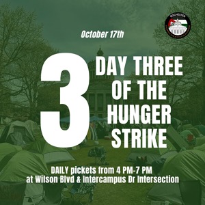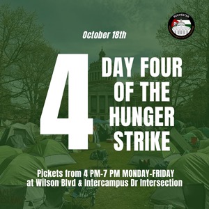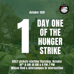 At the more SJP-friendly Rochester Beacon, former University of Rochester student Narm Nathan reported the next day that, “Members of Students for Justice in Palestine at the University of Rochester have launched a hunger strike, renewing their calls for the university to recognize the genocide in Gaza and sever its alleged ties to the Israeli war effort and settlement movement.”