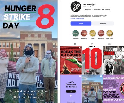 National Students for Justice in Palestine (NSJP) has been promoting hunger strikes since the beginning of the year. Students at Stanford University and five California State University campuses dutifully followed orders and played hunger artist during the summer.