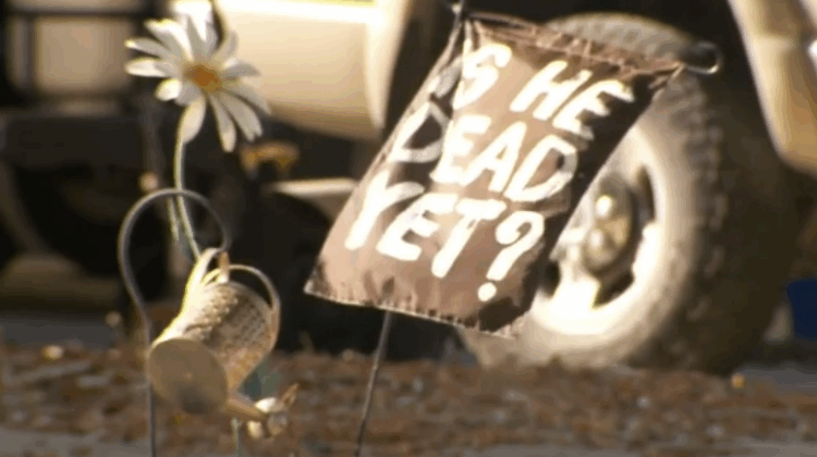 “The guy behind the tent table said, ‘Hey, give this to your mom, she’s going to really want this,’ and one of the children comes running up, gives us the bracelet and we’re looking at it and it literally says ‘Is He Dead Yet?’ on the bracelet,” Neubauer told reporter Tony Langfellow.