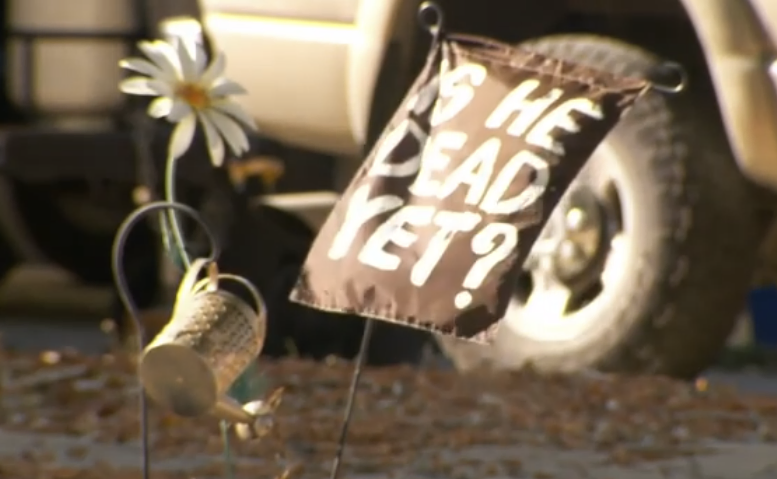“The guy behind the tent table said, ‘Hey, give this to your mom, she’s going to really want this,’ and one of the children comes running up, gives us the bracelet and we’re looking at it and it literally says ‘Is He Dead Yet?’ on the bracelet,” Neubauer told reporter Tony Langfellow.