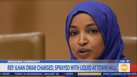 ABC’s Good Morning America reacted Wednesday to a strange man who unloaded a syringe of a harmless liquid at Congresswoman Ilhan Omar (D-Minn.) by tying him to President Trump, considering Omar has been a “frequent target” of the President as well as the source of “conservative anger.”