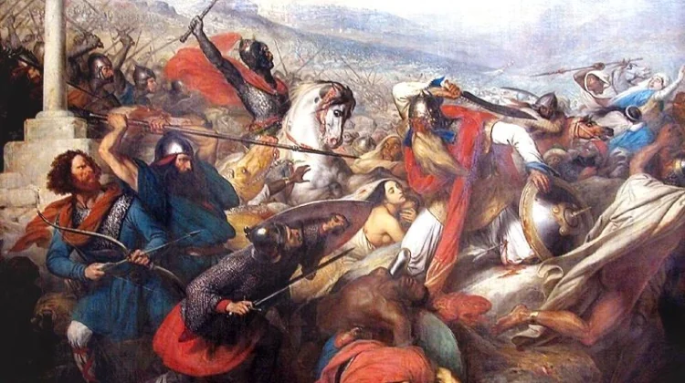 Note: The painting above is French Romantic Charles de Steuben’s “Bataille de Poitiers en octobre 732,” which depicts a mounted Charles Martel facing Abd-al Rahman Al Ghafiki at the Battle of Tours.
