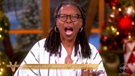 After playing edited soundbites of Trump rhetorically asking, “Why can’t we have some people from Norway, Sweden,” moderator Whoopi Goldberg was noticeably irritated. “Well, they see you as the president, and they don’t want to come here,” she sneered.