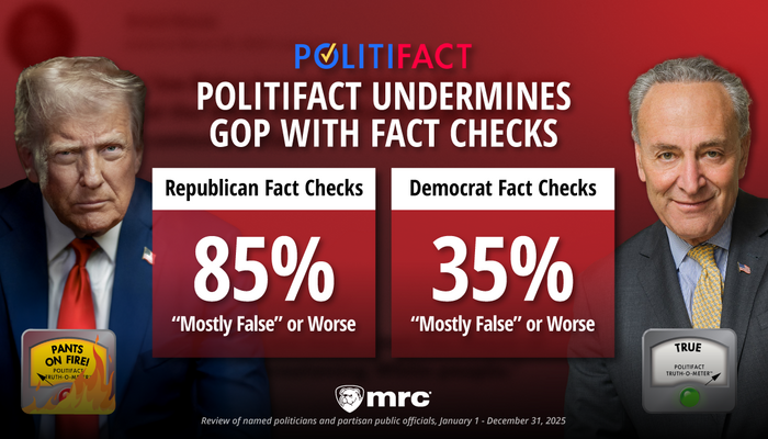 But a NewsBusters analysis of all the “Truth-O-Meter” ratings of elected or appointed officials in 2025 showed a dramatic tilt, as we’ve reported all year. From January 1 through December 31, Republicans were deemed “Mostly False” or worse in 124 of 146 fact checks (84.9 percent). The Democrats were tagged as “Mostly False” or worse in just 17 of 49 checks (34.6 percent).