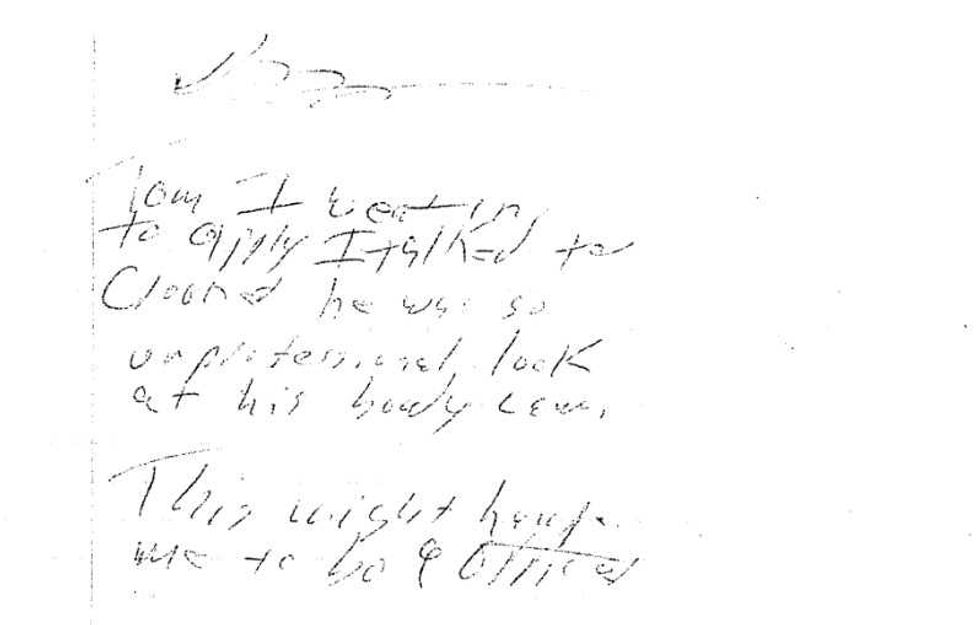 The note, aptly described as “difficult to understand,” is believed to read: “Tom I went in to apply I talked to Crocker he was so unprofessional, look at his body cam. This might hurt me to be a officer.”
