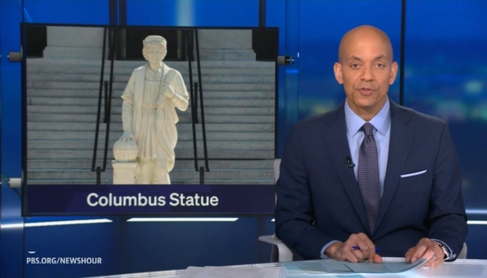 As America’s semiquincentennial rolls around, is the Trump Administration whitewashing the evils of America’s history? The PBS News Hour thinks so. On their “Politics Monday” segment with pollster Amy Walter and NPR White House reporter Tamara Keith, co-host Geoff Bennett asked his guests about the White House installing a statute of Christopher Columbus on the grounds.