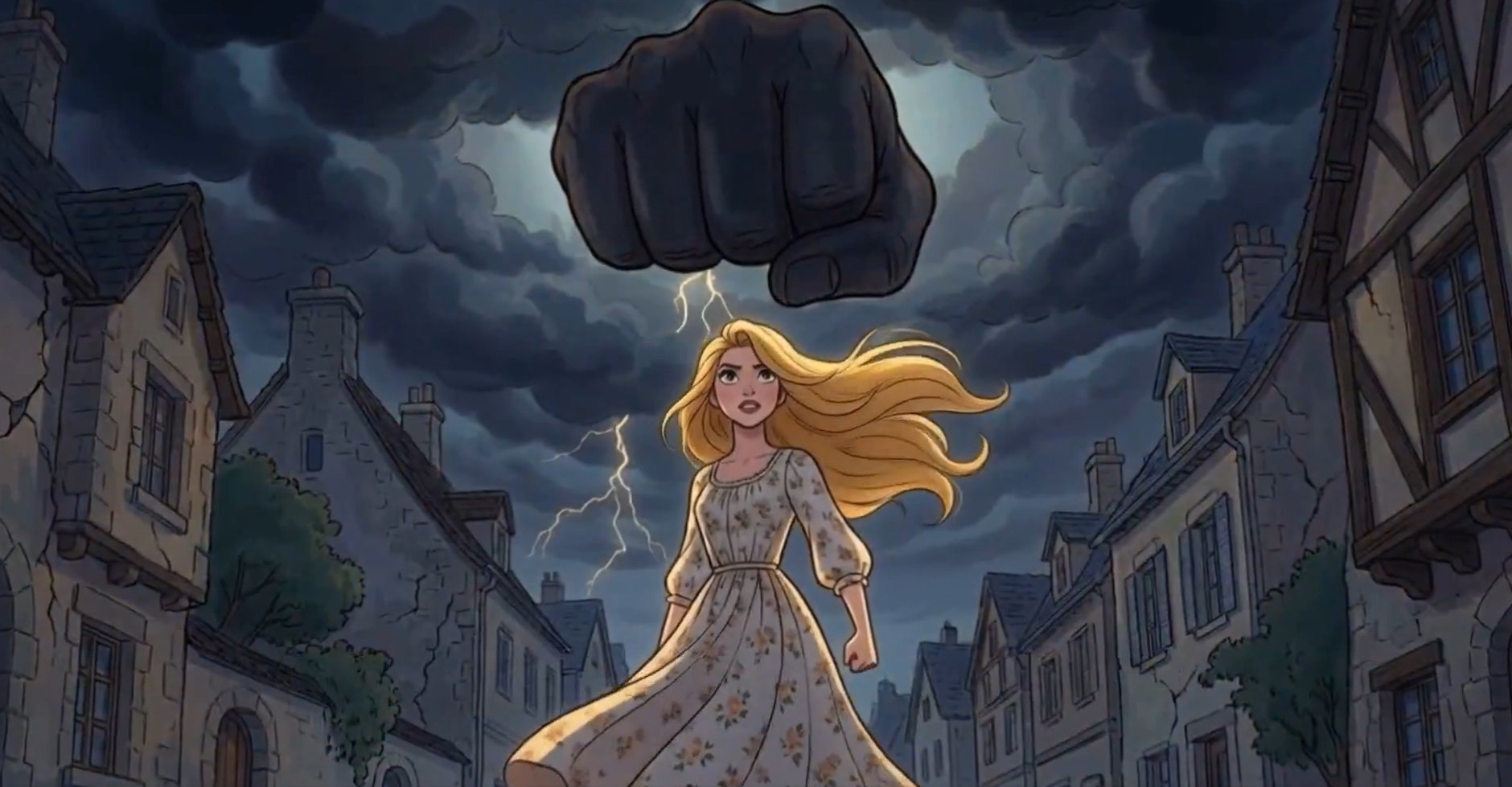 On Saturday, Keen posted a video creation of her own making (via AI): a five-minute, animated musical number from a fictional parody of a forthcoming Disney film called The Caliphate. A sort of modified version of the song “Belle” from the Disney classic Beauty and the Beast, the video features a blonde female protagonist singing and dancing her way through a tale of two cities: a sunny, idyllic British town transformed before our eyes into a dark, dystopian nightmare by submission to Islamic conquest from within. “Welcome to Britain under the brand new caliphate,” she sings in the chorus. “You’re no longer free.”
