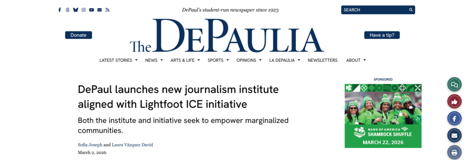 “DePaul launches new journalism institute aligned with Lightfoot ICE initiative,” read the headline by DePaulia editor-in-chief Sofia Joseph and content managing editor Laura Vázquez David. Also telling was that the anti-ICE “community briefing” with Lightfoot was moderated by former ABC News Nightline correspondent Chris Bury, who has since become the senior journalist-in-residence at DePaul. Per The Depaulia, “In describing how racial justice comes into play at [her] ICE accountability project, Lightfoot” told Bury that “it is ‘fundamentally a part of where we are.’”