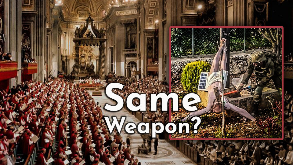 A shocking act of desecration in the Middle East becomes a lens for examining the Vatican II controversy and the transformation of Catholic teaching in the modern age. It seems that the sledgehammer used by the Israeli solider to smash the crucifix was the same one used at Vatican II to smash Catholicism.