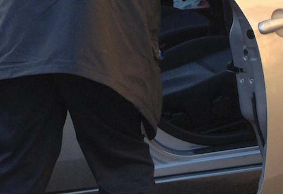 But after Michael got back in the passenger seat, the crook sneaked back and opened the driver-side rear door closest to the gas pump and actually got into the back seat, video shows.