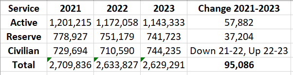 Federalist calculations using DMDC data from each fiscal year end in Sept.