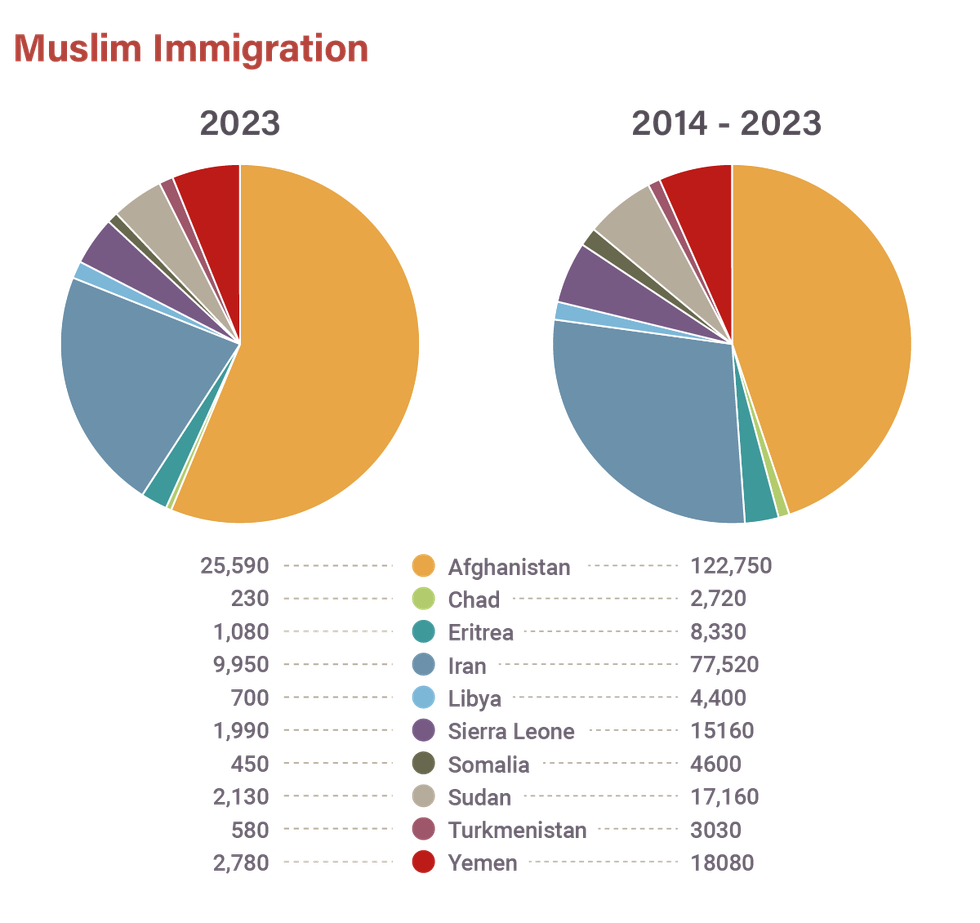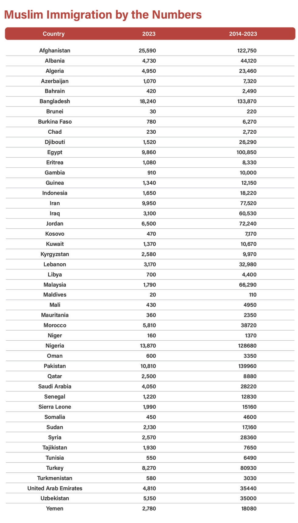 Here is the updated breakdown of immigration from all majority-Muslim countries in 2023 and over the prior 10 years: