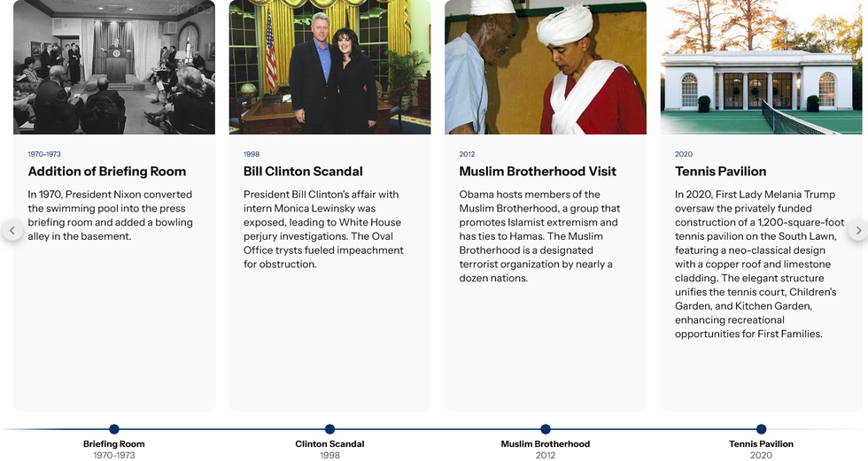 Besides referencing in its major events timeline Presidents William Howard Taft’s remodeling of the West Wing, Franklin D. Roosevelt’s expansion of it, and Harry Truman’s “total reconstruction” of the White House’s interior, the website now makes mention of Bill Clinton’s sordid sex scandal, noting that the former Democratic president’s affair with Monica Lewinsky set the stage for perjury investigations and, ultimately, his impeachment.