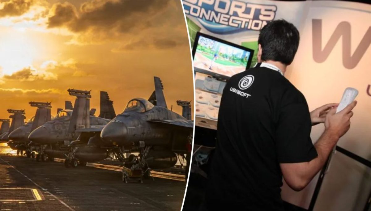 The video showcases various sports shots from the game, including a bullseye in archery, a baseball hit out of the park, and a hole-in-one in golf. All of the shots have the balls landing their targets with footage of U.S. missile strikes in Iran.