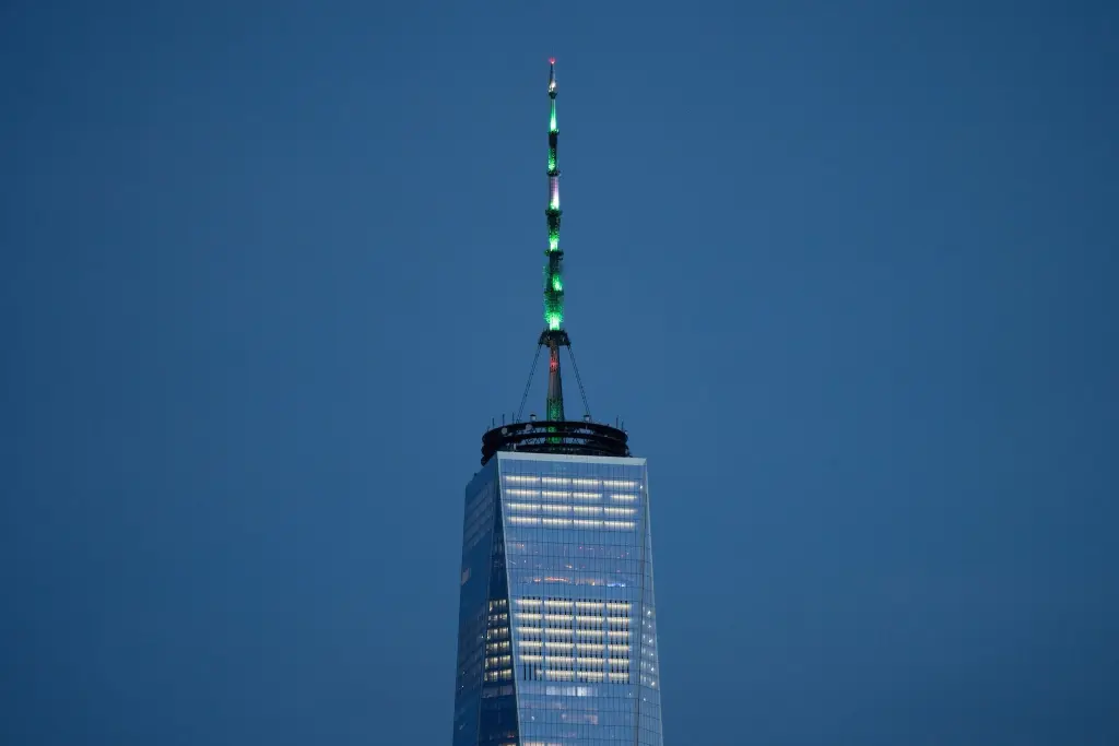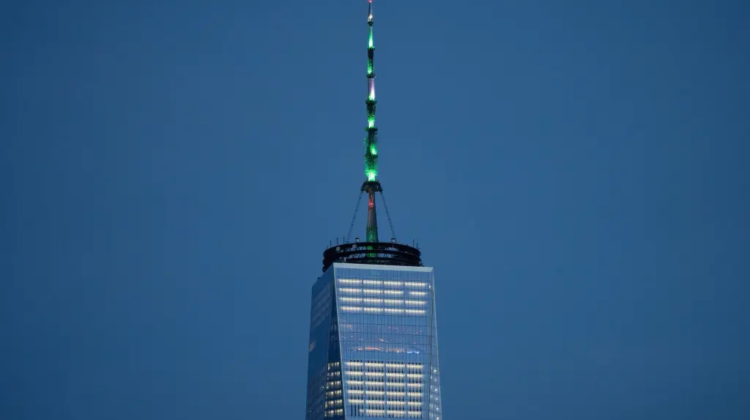In a desperate and probably ultimately hopeless bid to keep Muslims from flying planes into one of New York City’s tallest surviving skyscrapers after a bunch of fellows with ‘Mohammed’ in their names knocked down the World Trade Center for the greater glory of ‘Allah’ in the hopes of getting him to push the button on his virgin dispenser, One World Trade Center that was built to replace was lit up green in honor of Islam.