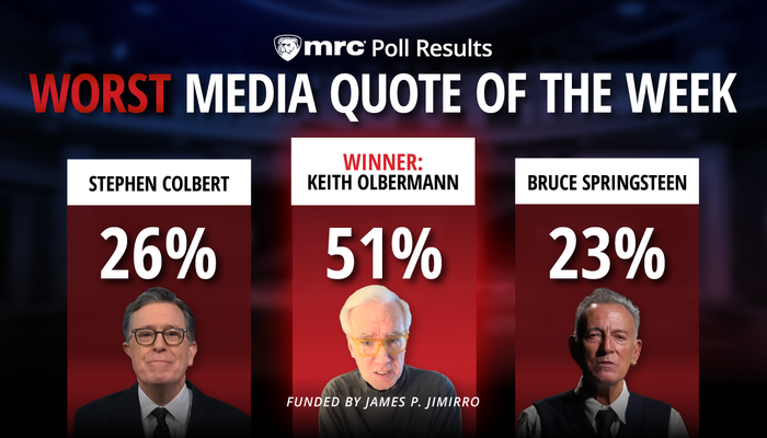 It’s time to find out who had the Worst Media Quote of the Week. This interactive series is where you — our loyal NewsBusters visitors and MRC supporters — get to vote on which leftist journalist or celebrity had the worst media quote of the week.