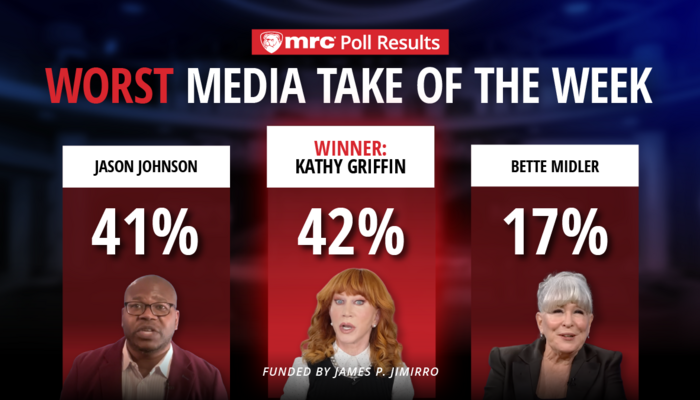 We’ve got a new interactive series called Worst Media Take of the Week, where you — our loyal NewsBusters visitors and MRC supporters — get to vote on which leftist journalist or celebrity had the worst media take of the week.