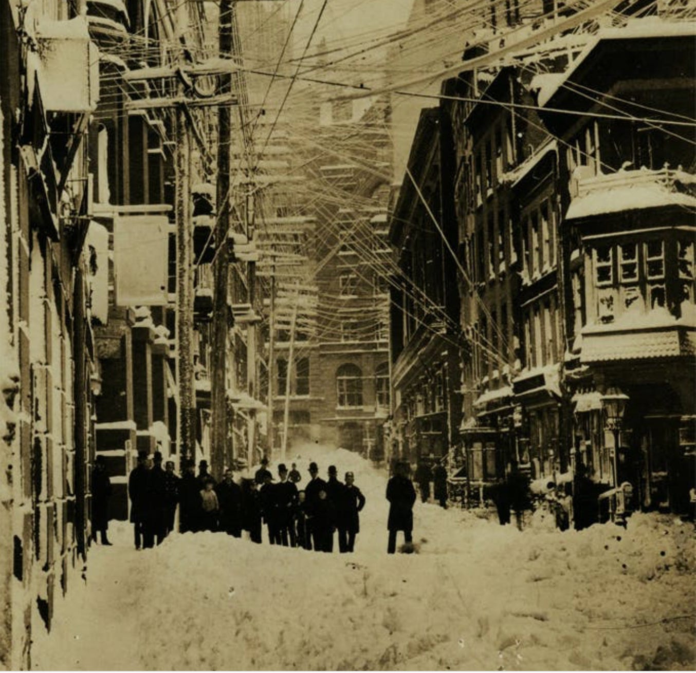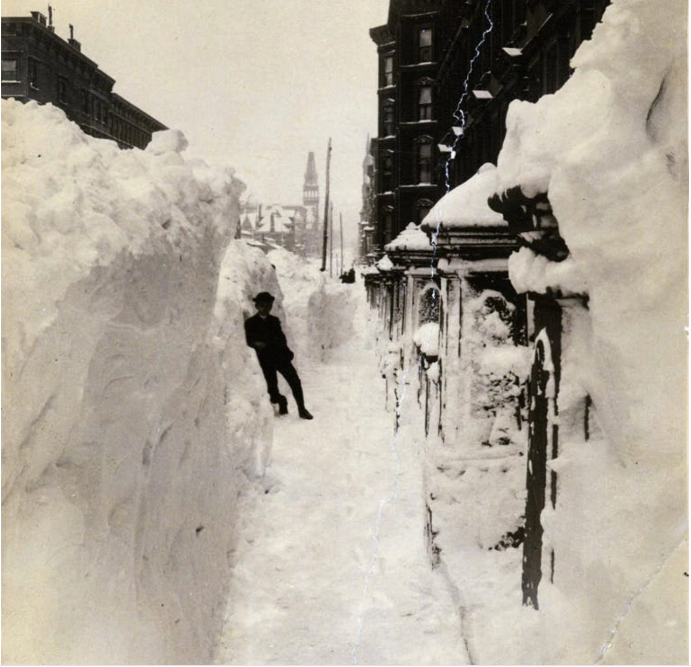 In 1888, 21 inches of snow fell in 24 hours; eventually snow in that snowstorm, accumulated to snowbanks almost five feet high.